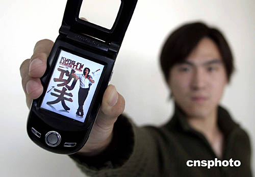 周星馳新片《功夫》即將于12月23日在中國內(nèi)地上映,而中國內(nèi)地的周星馳影迷已經(jīng)可以通過手機(jī)提前欣賞電影《功夫》。中國最大的手機(jī)上網(wǎng)內(nèi)容服務(wù)提供商“空中網(wǎng)”斥資買斷《功夫》的中國地區(qū)獨(dú)家電信增值業(yè)務(wù)版權(quán),其中包括《功夫》視頻片段和花絮、電影劇照、海報(bào)、音樂、對(duì)白、音效、劇情等無線版權(quán)。中新社記者:張煒