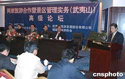 中新社武夷山十二月十六日電(記者楊伏山 黃翔)兩岸旅游合作暨景區(qū)管理實務高級論壇十六日在風景秀麗的福建武夷山開幕,來自金門、馬祖、臺灣及祖國大陸的近百名旅游業(yè)界及相關人士參加了開幕式。