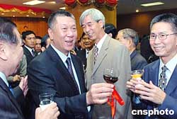 何厚鏵向與會(huì)人士一一敬酒,祝賀澳門回歸祖國(guó)五周年。 作者:宋吉河