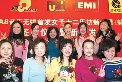 中新網(wǎng)12月17日電 據(jù)北京娛樂(lè)信報(bào)報(bào)道,新專輯在音像店里買不到,但可以通過(guò)下載手機(jī)鈴聲先聽(tīng)為快。這是“女子十二樂(lè)坊”新專輯《敦煌》出的高招。昨(16)天,這張新專輯先于音像店率先在網(wǎng)上全球首發(fā)。