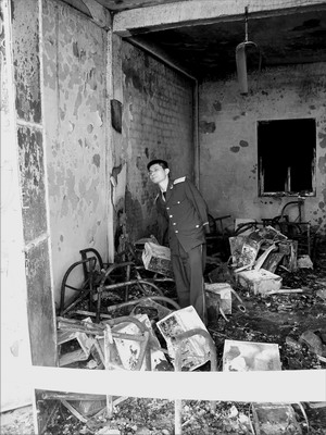 昨日上午11時左右,記者趕到現(xiàn)場看到,這棟兩層的樓房已被警方用警戒線封鎖,有民警在現(xiàn)場值班守護。大火將網(wǎng)吧內(nèi)的所有電腦設(shè)備及桌椅燒毀變形,就連距離地面約3米多高懸掛著的吊扇葉片,也被燒得變形后垂直向下,網(wǎng)吧樓上臨街的二樓全部被熏成黑色。