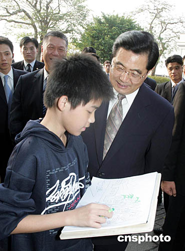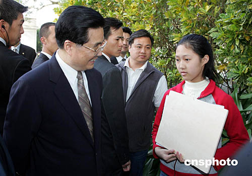 胡錦濤主席在參觀澳門著名景點(diǎn)大炮臺(tái)時(shí),與在現(xiàn)場(chǎng)寫生的一位澳門兒童交談,并祝他長(zhǎng)大后成為一名畫家。
