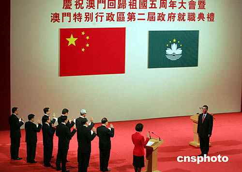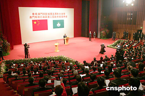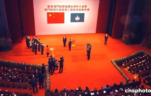 慶祝澳門回歸祖國五周年大會暨澳門特別行政區(qū)第二屆政府就職典禮十二月二十日在澳門文化中心舉行。