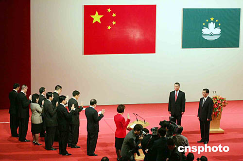 二十日,澳門特別行政區(qū)第二屆政府舉行隆重的就職典禮。