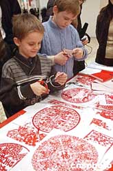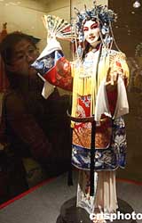 十二月二十六日,北京民間藝術(shù)展正在中華世紀(jì)壇舉行,風(fēng)箏、泥塑、面塑、毛猴、剪紙、蛋雕、京劇臉譜等二十多個(gè)藝術(shù)門(mén)類的二百八十件民間工藝品與觀眾見(jiàn)面。作者:韓藝冰