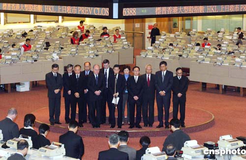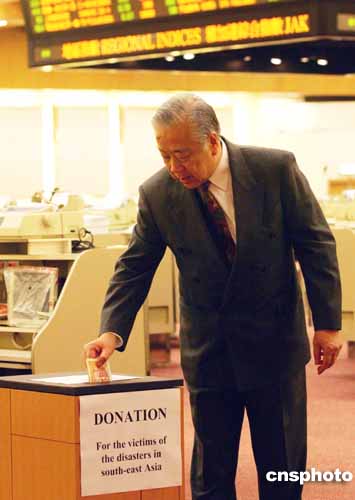 香港聯(lián)合交易所在早上開市前為南亞大地震和海嘯災(zāi)難中的死者默哀1分鐘,并在大堂內(nèi)設(shè)置捐款箱,籌款賑災(zāi)。作者:洪少葵