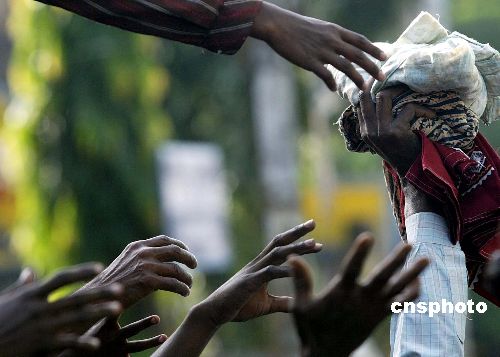 12月26日由印尼強(qiáng)震引發(fā)的猛烈海嘯,給印度、斯里蘭卡、泰國(guó)、印度尼西亞、馬爾代夫、馬來西亞等國(guó)家?guī)韲?yán)重災(zāi)難。各受災(zāi)國(guó)的災(zāi)后救援工作已經(jīng)全面展開,數(shù)百萬災(zāi)民急需幫助。圖為在印度災(zāi)區(qū),災(zāi)民在領(lǐng)取少得可憐的救濟(jì)物資。作者:Ic/cnsphoto