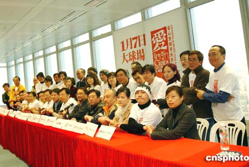 由香港演藝界發(fā)起于1月7日舉行的《愛心無國界》籌款表演,定于香港政府大球場舉行,1月1日,演藝界及多個團(tuán)體聯(lián)合在香港國際金融中心舉行發(fā)布會,一眾出席嘉賓手拉手以示賑災(zāi)決心。作者:洪少葵