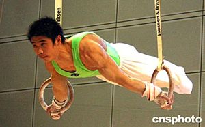 二○○四“蘇州高爾夫花園杯”全國體操錦標賽暨奧運會預選賽五月十四日在江蘇蘇州市體育中心拉開帷幕,來自中國各省、自治區(qū)、直轄市的二十二個代表隊的二百七十多名運動員將角逐雅典奧運會參賽資格。作者:蔣振江