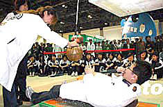 二零零四年全國科技活動周暨北京科技周于五月十五日在北京展覽館隆重舉行,一位“氣功大師”通過現(xiàn)場表演的形式普及科學知識,提高公眾科學素養(yǎng)。作者:徐曦弋