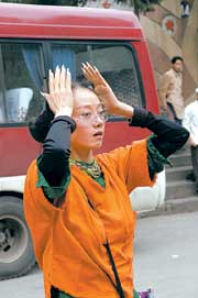 記者見到的楊麗萍風(fēng)采依舊、容光煥發(fā)、婀娜動(dòng)人,一身大紅大綠的民族特色服裝穿出不一樣的味道。看見記者出現(xiàn)在排練的場(chǎng)地,楊麗萍顯然有些吃驚,但是很快露出了笑容。當(dāng)記者問及她的身體恢復(fù)得如何時(shí),楊麗萍很自然地說:“已經(jīng)好了,好了就是好了,現(xiàn)在沒什么病了,不用擔(dān)心!