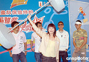 歌星鄭融5月19日在香港出席無線奧運節(jié)目《進軍雅典---燃點圣火雷霆夜》記者會,鄭融將聯(lián)同其它歌星演出「一個金牌的誕生」舞臺劇。作者:鄧慶樂