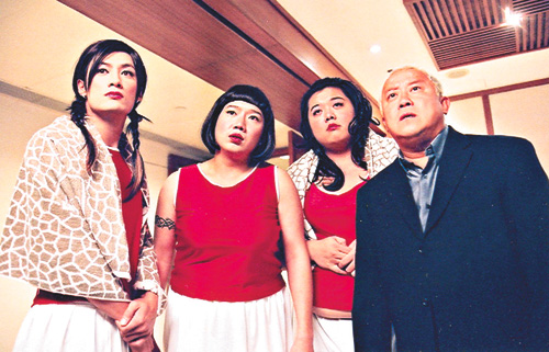 中新網(wǎng)5月21日電 據(jù)香港大公報(bào)報(bào)道,香港男藝員余文樂、杜汶澤和“肥仔聰”在新片《精裝追女仔2004》中演新一代追女王,各人在戲中都有多個(gè)不同造型,更要反串扮女人。(見上圖)