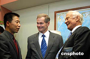 陪同楊利偉拜訪納爾遜的中國駐美大使楊潔篪說:“非常高興看到三位宇航員今天在一起聚會。楊利偉來訪是中美在航天領域合作的重要象征,邀請他來訪也是參議員先生新的創(chuàng)舉。相信在參議員和我們大家的共同努力下,中美在各個領域,包括太空領域的合作會取得顯著的進展。”