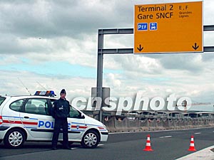 法國警方當天封鎖了通往出事候機廳的通道。 蔚中 攝