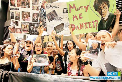 中新網(wǎng)5月25日電 據(jù)香港成報報道,魔幻電影《哈利波特》第三集《哈利波特與阿茲卡班的囚徒》前日在紐約作全球首映。演哈利的英國影星丹尼爾·拉德克里夫除獲不少名人捧場外,更獲數(shù)千位影迷圍睹,當中不少更舉頭著紙牌向丹尼爾當場求婚。
