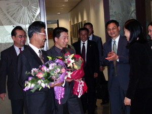中國常駐維也納代表張炎大使和中國駐奧地利大使盧永華等前往機場迎接楊利偉等中國航天英雄。