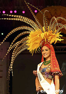 第十六屆世界模特小姐大賽國際總決賽五月二十八日晚在美麗的西子湖畔隆重舉行。圖為世模進(jìn)行特色服飾表演。作者:張茵