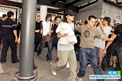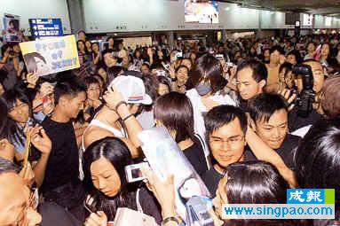 F3在大約6時(shí)抵達(dá),而朱孝天有工作在身稍后才到港。現(xiàn)場所見仔仔帶上口罩,帶病出席盛會。五百多Fans一見偶像立即蜂擁而上,保安由六人增至60人,F(xiàn)ans爭相上前握手和送花,場面一片混亂,更弄破一名攝影記者的鏡頭。期間吳建豪在人海中被人拍中頭部,使他十分愕然,在旁的暴龍加以安慰。F3離開機(jī)場后,F(xiàn)ans立即變成追蹤隊(duì),在公路上追車時(shí)險(xiǎn)象環(huán)生。此外,蔡依林昨晚在百忙中抽空到Dior掃貸,盡顯購物狂本色。