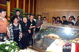 六月三日,豫劇大師常香玉遺體告別儀式在河南鄭州舉行,“豫劇五大主演”之一高潔(左三白發(fā)老者)同常香玉遺體告別。常香玉因癌癥醫(yī)治無效六月一日在河南病逝,享年八十一歲。中新社記者:慎重