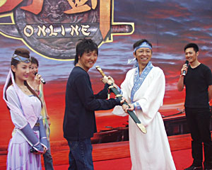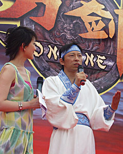 在象征著中國龍的居庸關(guān)長城腳下,上千位手持搜狐“群英帖”的嘉賓匯集一堂,儼然一場名副其實(shí)的江湖群英會!兜秳nline》發(fā)布會以氣勢恢弘的舞龍開場,代表著《刀劍Online》將在群雄逐鹿的網(wǎng)游市場,以原汁原味的中國功夫開篇中國人自己的網(wǎng)游傳奇!八押崎T人”張朝陽一身古代俠士裝扮出場,一番刀劍揮舞,顯示了不凡的武功造詣。而作為此款網(wǎng)游主題音樂代言人的內(nèi)地著名歌手孫楠則以一曲曲風(fēng)高揚(yáng),極具武俠風(fēng)格的《刀劍》將發(fā)布會氣氛推向高潮。