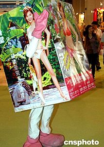 “第三十五屆夏日婚紗及結(jié)婚用品展”六月四日在香港會(huì)展中心開幕,是次展覽云集兩百多間公司、三百多個(gè)攤位。圖為商家卡通人在展會(huì)上促銷。作者:錢興強(qiáng)