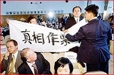 據(jù)臺(tái)灣媒體報(bào)道,呂秀蓮是在5日在圣卡洛斯大學(xué)獲“榮譽(yù)博士學(xué)位”后正想致詞時(shí),坐在臺(tái)下的臺(tái)當(dāng)局前“駐危地馬拉武官”桂務(wù)勇突然高舉“真相、作票、恥”的白布條,并高呼“沒有真相、沒有‘副總統(tǒng)’”。