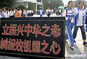 記者在各個(gè)考場看到,校園到處是為考生們精心布置的彩旗以及月季、牡丹等盛開的鮮花!办o靜心,易發(fā)揮;動動腦,考得好”、“輕松應(yīng)對考試,把壓力留在考場外”等標(biāo)語等人性化標(biāo)語,取代了幾年前的“嚴(yán)禁”字眼,讓人倍感溫馨。