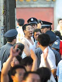 昨天16時50分,離演出開始還有10分鐘,地壇方澤壇內就涌入了數(shù)百名搖滾樂迷。17時,主辦方突然抱歉地向觀眾解釋,為了不影響高考,演出延遲30分鐘舉行。20多分鐘后,在焦急地等待中,這場公益“搖滾大餐”終于開場。包著紫白相間頭巾、戴著墨鏡的瘦人樂隊主唱戴秦一亮相,就引來臺下觀眾一陣陣夾雜著尖叫和口哨聲的熱烈吶喊。戴秦一口氣唱了兩首勁歌,精彩紛呈的表演和震耳欲聾的音樂讓臺下的歌迷叫得聲嘶力竭。