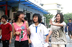 六月八日,全國統(tǒng)一高考結(jié)束,北京莘莘學(xué)子們步出考場高興地和焦急等待著的家長打招呼。中新社記者:張勤