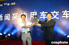 六月八日晚,一汽集團在北京國際會議中心舉行新聞記者見面會,一汽老總竺延風等在見面會上解答了眾多記者的提問,會后舉行新聞采訪用車的交車儀式,第一汽車集團公司副總經(jīng)理安德武向媒體代表頒發(fā)“車鑰匙”。中新社記者:盛佳鵬