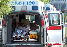 六月九日,十輛急救車在北京大安山煤礦出事礦井附近待命,已等候一天一夜的醫(yī)務(wù)人員在車上小憩。六月六日,位于北京郊區(qū)的大安山煤礦發(fā)生坍塌事故,十名礦工被困井下。原先估計九日上午即可打通營救巷道,找到被困礦工,但井下地質(zhì)狀況十分復(fù)雜,截至九日下午六時,巷道尚未打通,估計還有三米的距離。中新社記者:張煒