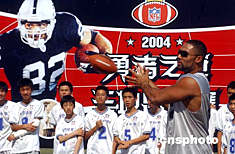六月十一日,來自美國國家橄欖球大聯(lián)盟的明星球員Teyo Johnson在北京對此間參加首屆美式腰旗橄欖球總決賽的中國小運動員進(jìn)行技術(shù)指導(dǎo)。美式腰旗橄欖球是源于美國國家橄欖球大聯(lián)盟(NFL)的一項大眾化運動,旨在將美式橄欖球的基礎(chǔ)規(guī)則和技巧介紹給全世界八至十四歲的青少年。目前,這項運動在世界三十多個國家的青少年中廣為流行。中新社記者:武仲林