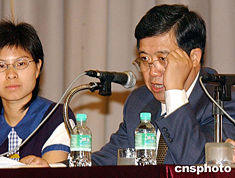 中央人民政府外交部駐香港特別行政區(qū)特派員公署特派員楊文昌,六月十五日在香港福建中學(xué)與學(xué)生對(duì)話,并發(fā)表演講。圖為楊文昌在活動(dòng)上接受香港傳媒采訪。中新社記者:錢興強(qiáng)