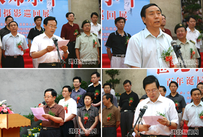 中國新聞社副總編輯田惠明、中共宜昌市委副書記文成國、市委常委、宣傳部長趙舉海、市人大副主任肖道根、市政府副市長廖達鳳、市政協(xié)主席李泉、解放軍宜昌市軍分區(qū)司令員張建國、三峽大學(xué)、武警二支隊負責(zé)人的代表、中國新聞社湖北分社社長章敦華等出席首展儀式并且為首展剪彩。首展儀式由趙舉海主持,文成國、田惠明和各界代表先后在儀式上發(fā)表講話。