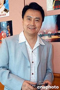 總政歌舞團(tuán)團(tuán)長(zhǎng)、著名導(dǎo)演張繼鋼(右一)于會(huì)上向傳媒介紹是次演出詳情。作者:鄧慶樂(lè)