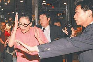 她隨孫楠第二個下車后,就不停地快跑,并有意把歌迷和記者拖到酒店大堂內(nèi),并在大堂內(nèi)放慢腳步任記者抓拍鏡頭。與此同時,沒有下車的李亞鵬由司機順利帶到酒店后門的員工通道,由等候在那里的助手攙扶著,直奔21樓王菲所住的總統(tǒng)套房,與其會合。