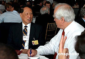 美東時間六月二十四日,全球契約領(lǐng)導(dǎo)人高峰會議在紐約聯(lián)合國總部舉行。該峰會旨在呼吁全球商業(yè)機構(gòu)、社會團體和勞工組織,與政府協(xié)力,保護人權(quán)、改善勞工條件和加強環(huán)境保護。圖為中國全國人大常委會副委員長成思危(左)出席峰會圓桌會議。作者:陳建