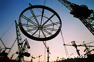 三峽電站右岸廠房十八號發(fā)電機(jī)組的引水壓力首節(jié)鋼管,六月二十八日晚八時順利吊裝就位。此鋼管內(nèi)徑為十二點(diǎn)四米,厚五十八毫米,首裝節(jié)重三十六噸。此項(xiàng)工程的順利完成對三峽三期工程大壩混凝土澆筑工序具有重要意義。作者:孫榮剛