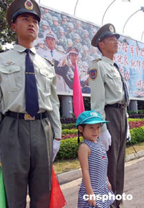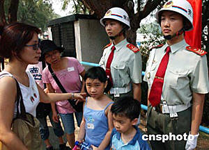 今日是香港回歸七周年紀(jì)念日,大批香港市民冒著高溫酷暑,踴躍前往解放軍駐港部隊(duì)軍營(yíng)參觀,在赤柱、昂船洲、石崗三個(gè)開放的軍營(yíng)里,充滿了市民對(duì)解放軍威武文明之師的贊譽(yù),以及軍民聯(lián)歡的笑語(yǔ)。