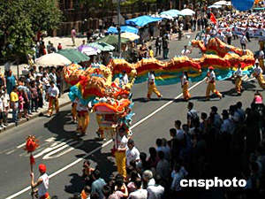 二零零四年七月四日是美國獨(dú)立二百二十八周年。七月三日中午,數(shù)千華人聚集在紐約曼哈頓中國城舉行游行活動(dòng),慶祝美國國慶。作者:陳建