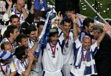 中新網(wǎng)7月5日電 在北京時(shí)間今天(5日)凌晨結(jié)束的2004年歐洲足球錦標(biāo)賽決賽中,希臘隊(duì)?wèi){借前鋒查里斯特亞斯的入球以1:0擊敗東道主葡萄牙隊(duì)奪得冠軍。