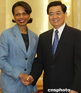中國國家主席胡錦濤9日在北京會(huì)見美國總統(tǒng)國家安全事務(wù)助理賴斯時(shí)說,進(jìn)入新世紀(jì),雖然國際形勢(shì)發(fā)生了很大變化,但中美關(guān)系的重要性不但沒有減弱,反而增強(qiáng)了;中美兩國擁有的共同利益不但沒有減少,反而增多了。