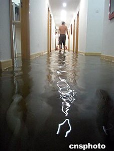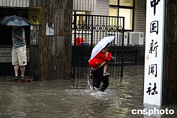 中國(guó)新聞社的地下室被淹,大廈停電。中新社記者:任晨鳴