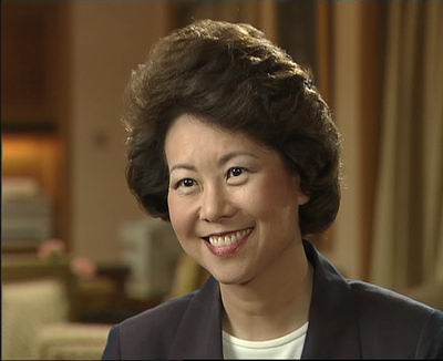 趙小蘭:你知道,在美國并不是許多亞裔都能有機會步入政界,我們長大以后,父母們都希望我們能在工程科學領域發(fā)展,因為這些領域向我們提供了很大的發(fā)展空間,在這些領域里語言并不是很大的障礙,所以這些是亞裔美國人經常涉足的領域。隨著我在美國主流社會里的逐漸打磨,我很幸運有一對開通的父母,他們鼓勵我做任何我想做的嘗試,他們也是非常堅定的人,他們鼓勵我去探索世界,開拓視野,從而真正找到世界的真相,所以在我還是紐約一家知名銀行里的一個年輕職員的時候,我對美國聯邦政府就非常好奇,因為并不是很多亞裔美國人都有機會在聯邦政府里工作,我看到了白宮實習生計劃后,感到這是加入聯邦政府的一個契機。(記者:這對您是一個轉折點,是嗎?),那段經歷非常有意思,它向我提供了一個與內閣成員和其他政府高級官員共事的機會,我在白宮的政策發(fā)展部門工作,在里根總統(tǒng)的內閣里充當一名職位很低的職員,這讓我初步體驗到這個世界有多大,體驗到我從沒見過的政府有多大,它每天都在向我打開一扇新的大門,我每天也都在學習新的東西,當時我真希望能有更多的亞裔美國人和我一起,讓他們也看一看我見到的這個寬廣的世界。