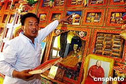 七月十二日,甘肅省甘南藏族自治州夏河縣藏醫(yī)院院長貢保扎西向來賓介紹該醫(yī)院藏醫(yī)藏藥學藏書館,他說,這二百八十冊藏醫(yī)藥學藥典記錄了近三千年藏醫(yī)藥臨床經驗,對后來藏醫(yī)藥的發(fā)展起著重要作用。中新社記者:王麗南