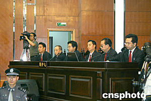 “一二·二三”特大井噴事故案今天上午九時(shí)三十分在重慶市第二中級(jí)人民法院開庭審理。圖為辯護(hù)人在法庭上。作者:鄒輝