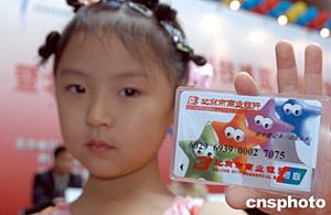七月十四日,北京市商業(yè)銀行與共青團北京市委、北京青少年科技文化交流服務中心共同推出成長帳戶——京卡儲蓄未來卡,以有效開展青少年理財教育工作。圖為六歲的王柯竺小朋友成為該帳戶的首位用戶。作者:徐曦弋