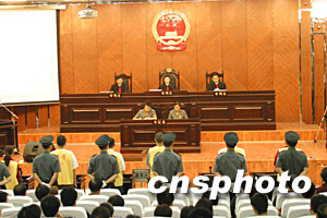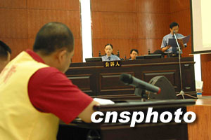 “一二·二三”特大井噴事故案七月十四日上午九時三十分在重慶市第二中級人民法院開庭審理。圖審判現(xiàn)場。作者:鄒輝