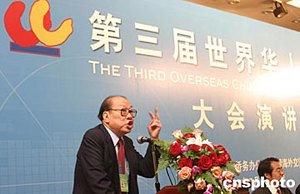 菲律賓陳永栽集團董事長陳永栽在《第三屆世界華人論壇》上作《從中菲經貿發(fā)展探討華商在“中國——東盟自由貿易區(qū)”建設中的地位與作用》的大會演講。中新社記者:史利